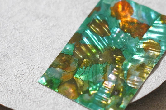大人気のシールタイプはハサミでお好きな形に切ってお使いいただけます。フレークタイプは従来のシェルフレークと比べてずっと薄く、透明感が高い上発色が良く、操作性に優れています。