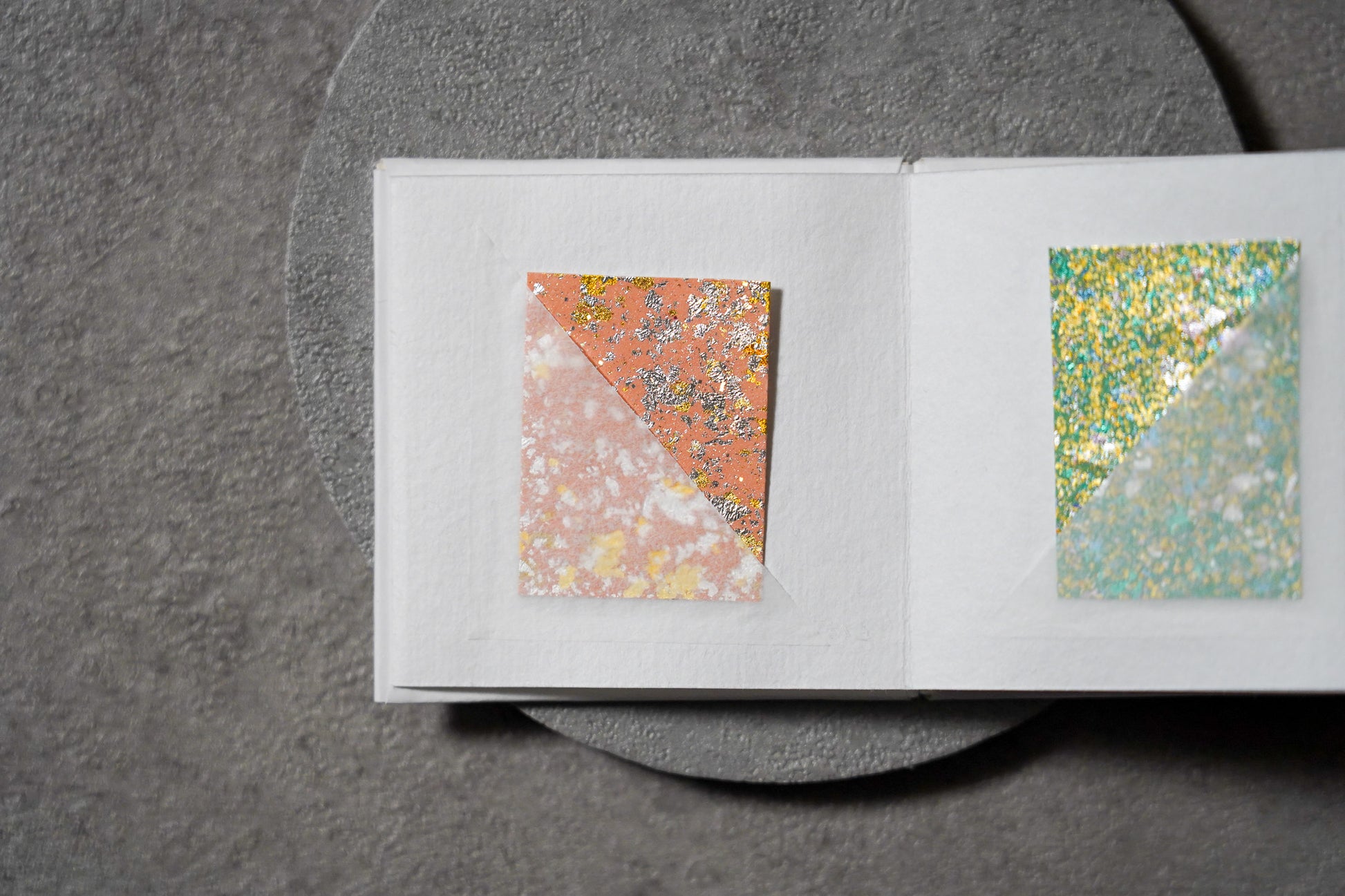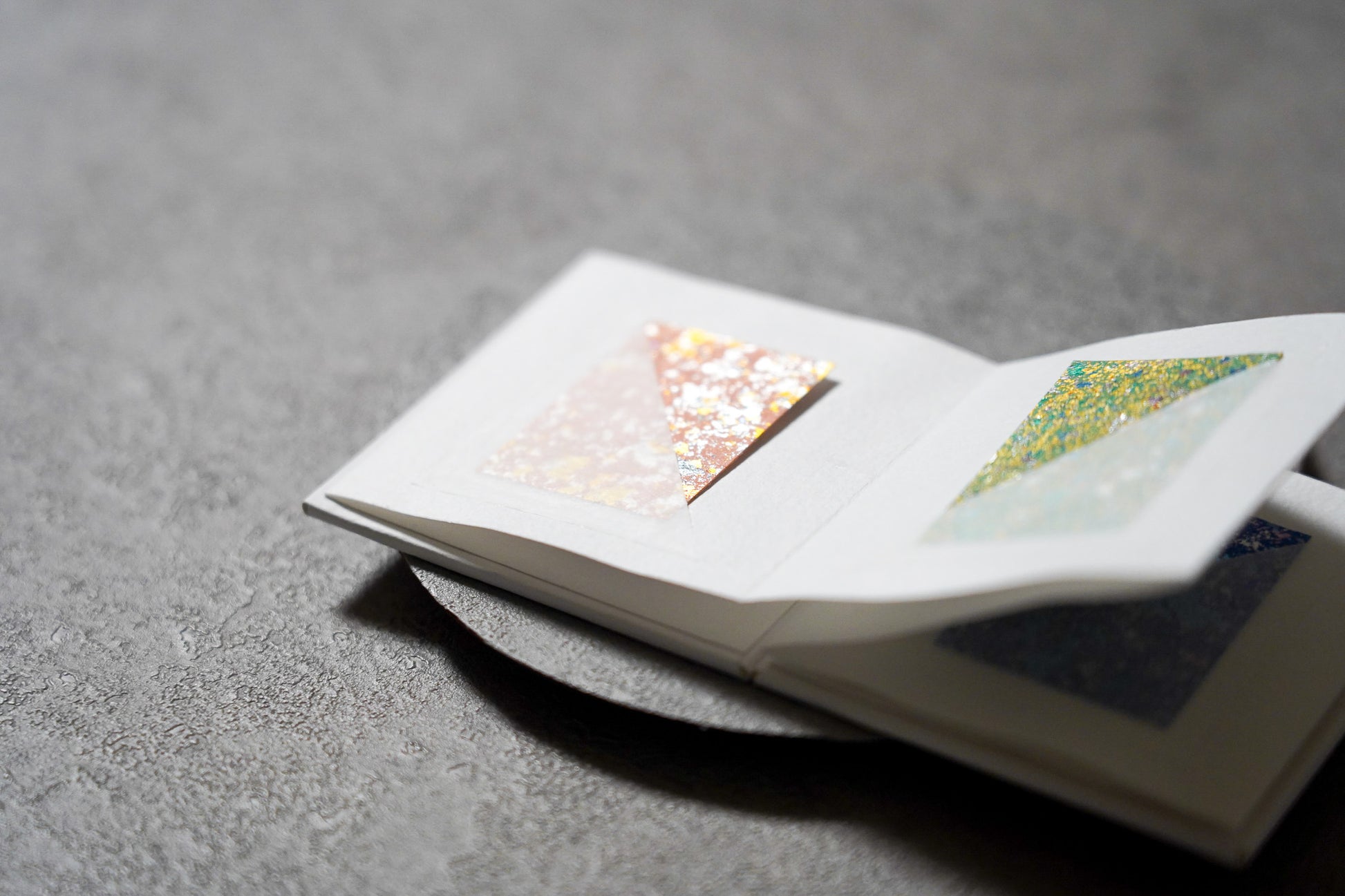 思わずコレクションしたくなるようなミニブックに収納した状態でお届け。