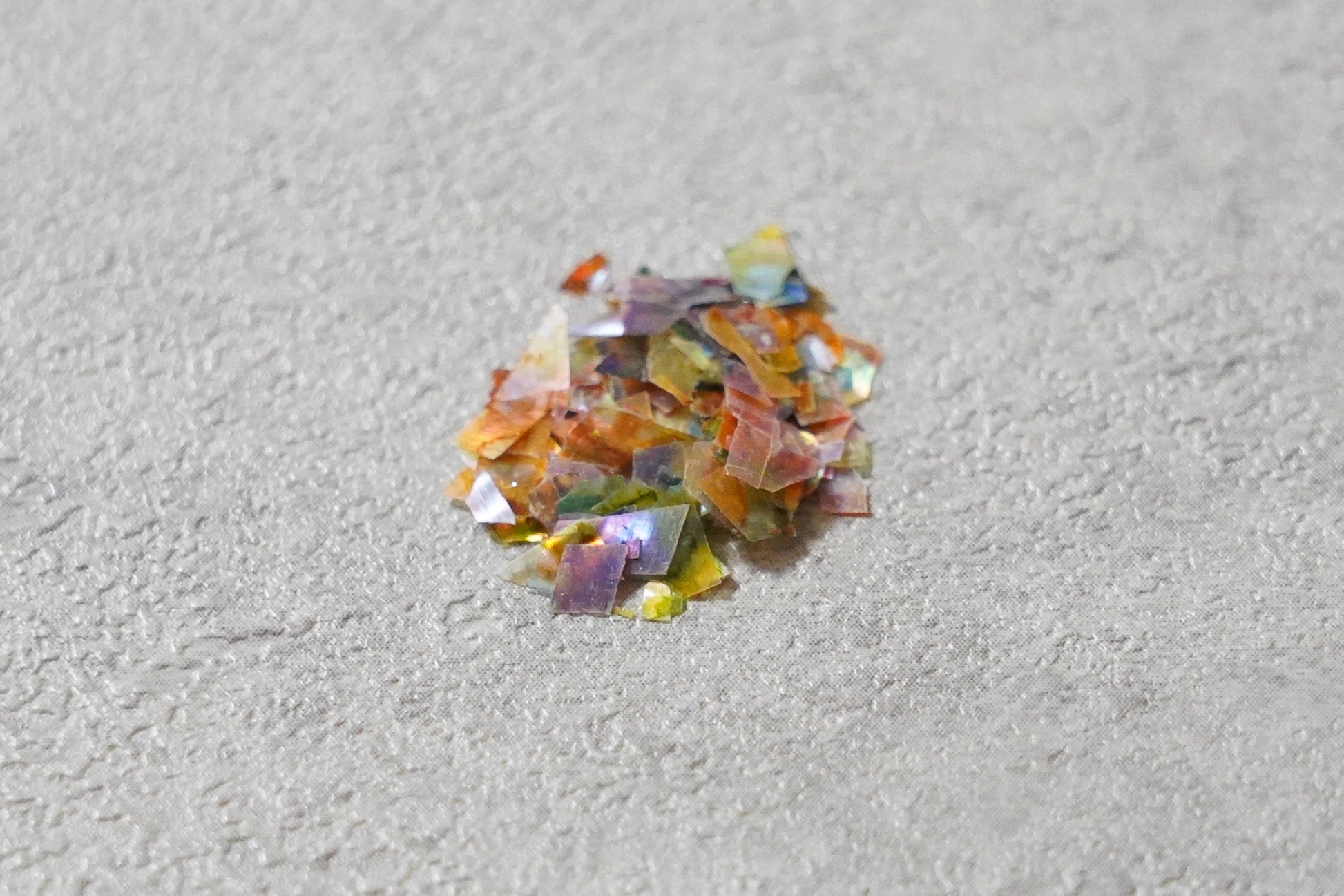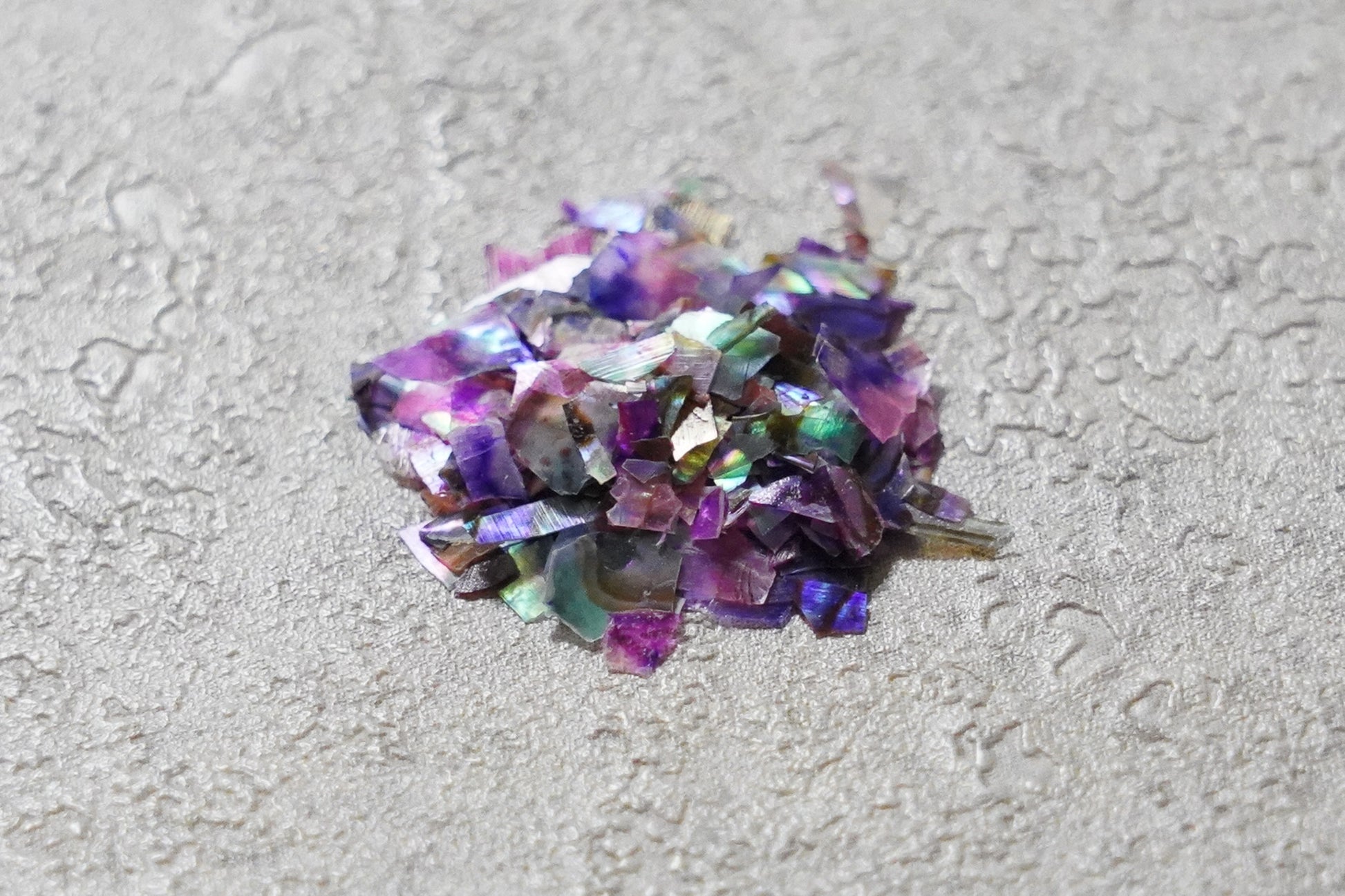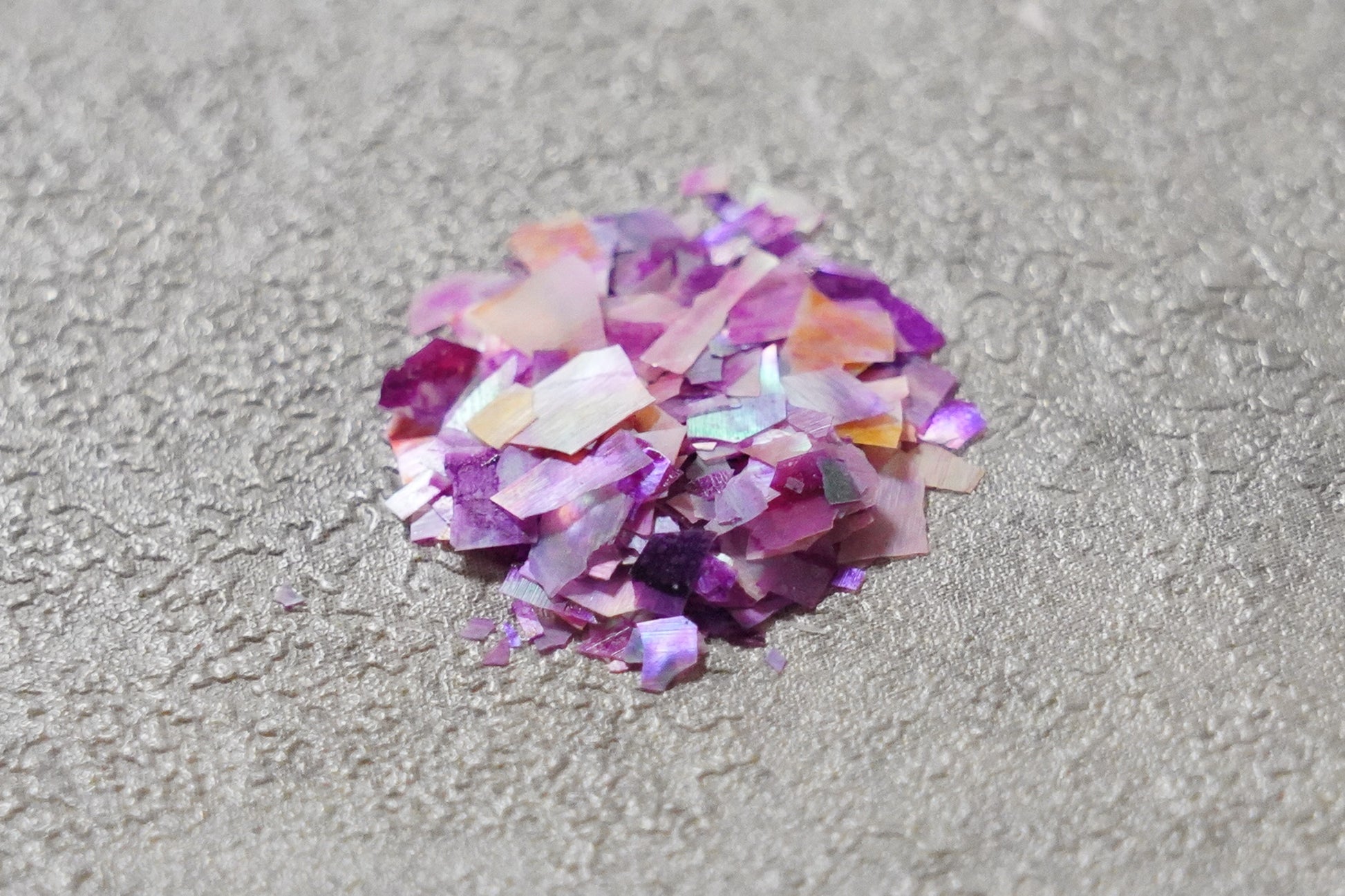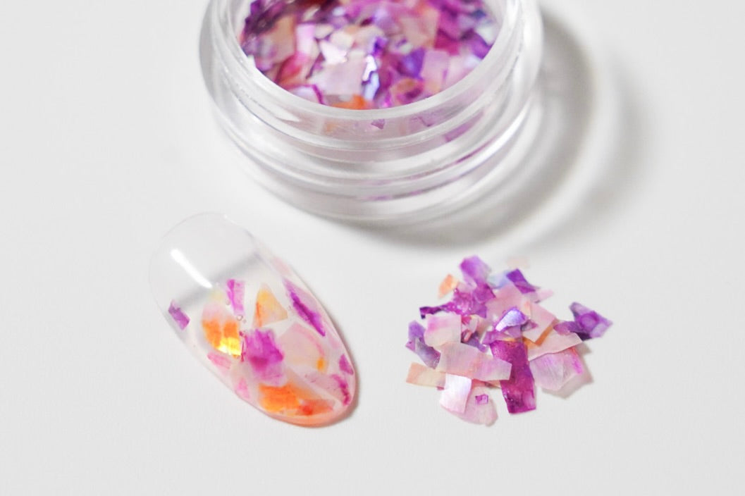従来のネイル素材のシェルフレークと比べ、とても薄く操作性が優れており、透け感の美しいフレーク素材です。
