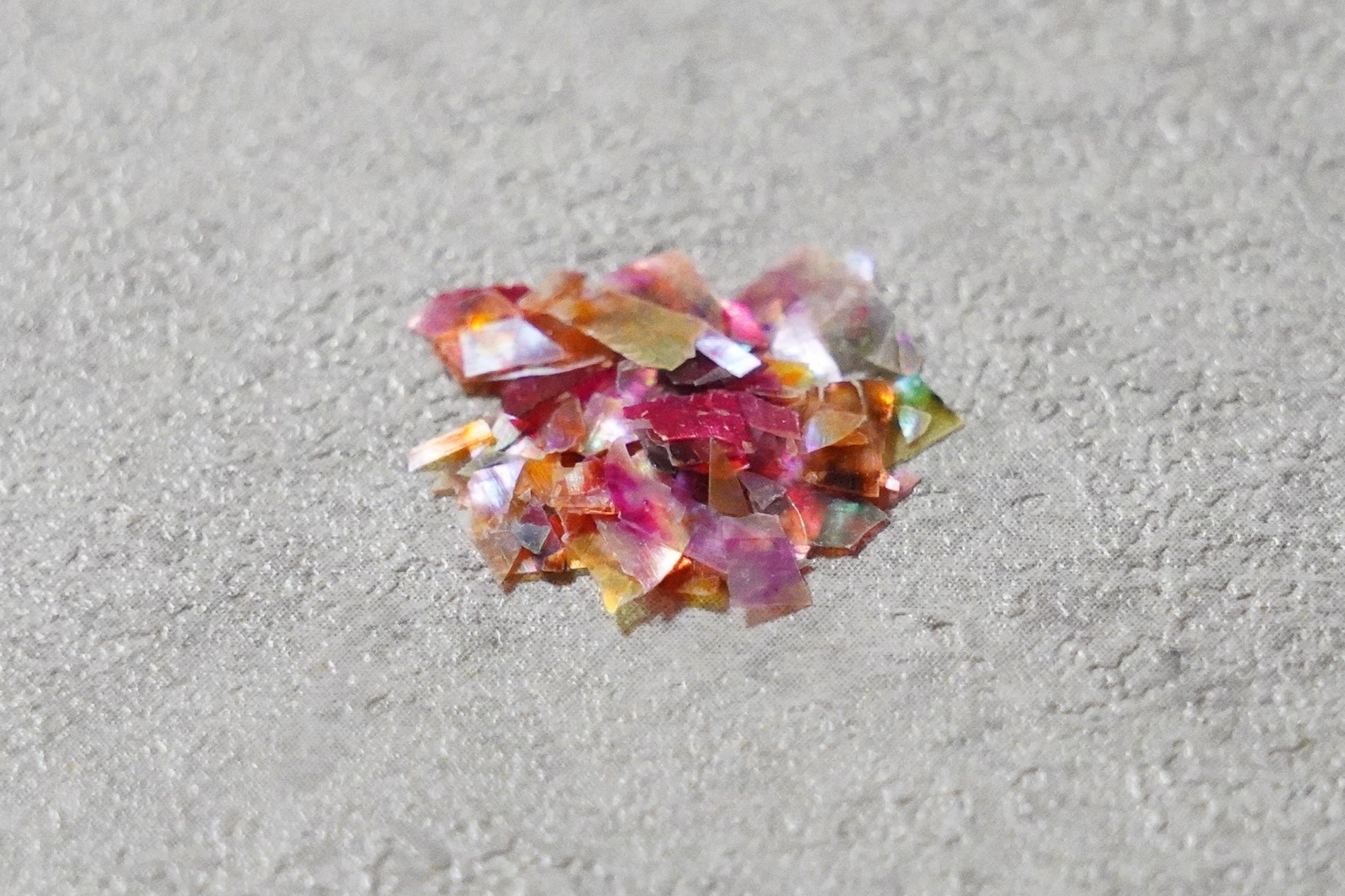 従来のネイル素材のシェルフレークと比べ、とても薄く操作性が優れており、透け感の美しいフレーク素材です。