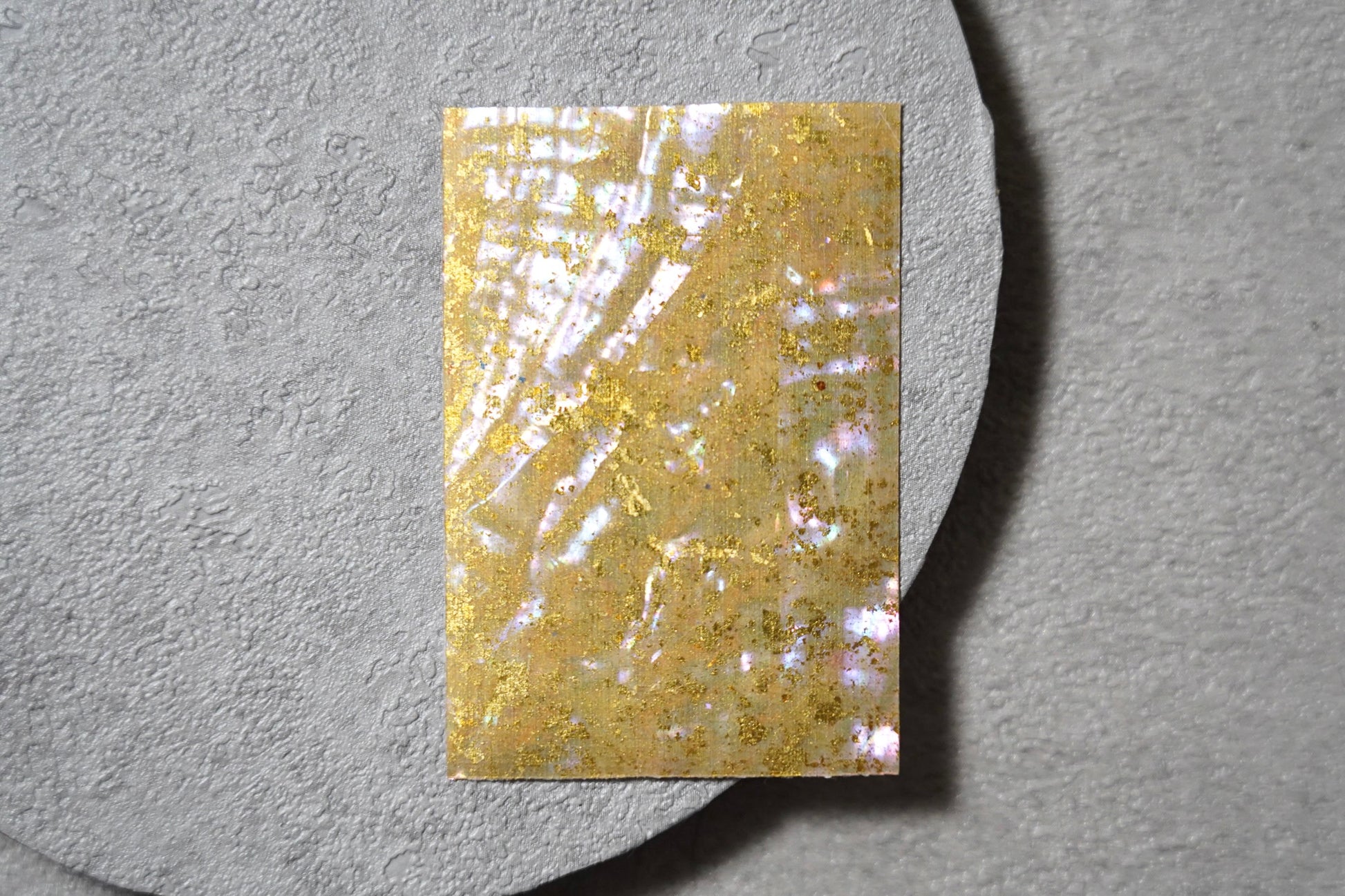 山森氏の生み出す螺鈿彩シールは全てが手作業、手描きで制作され、制作時の季節や気温や湿度によっても柄や色合いが変わります。