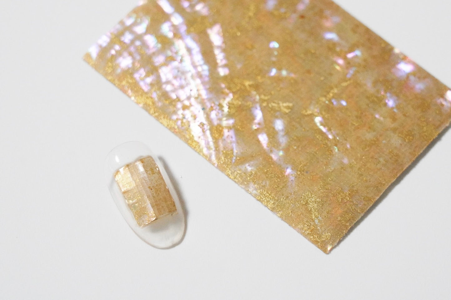 ネイルに施すための貝殻を柔らかくする加工や、小さな面積でも十分に色彩を表現できるよう試行錯誤を重ね、職人でありアーティストでもある山森氏だからこそ表現できる螺鈿彩の世界観をそのまま素材に落とし込みました。