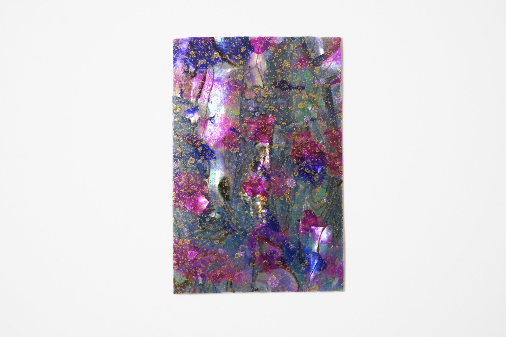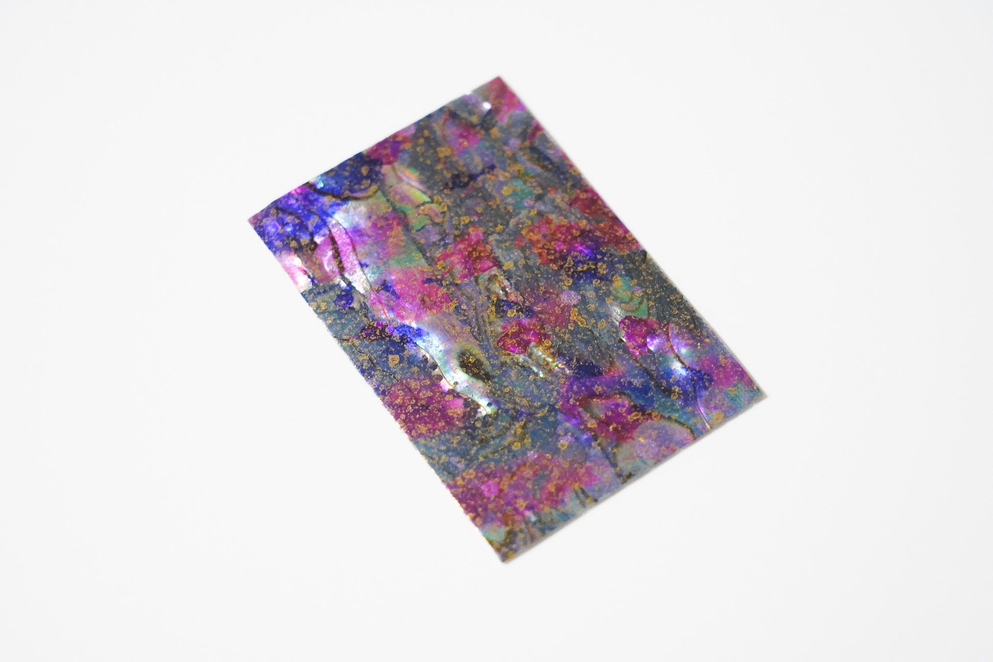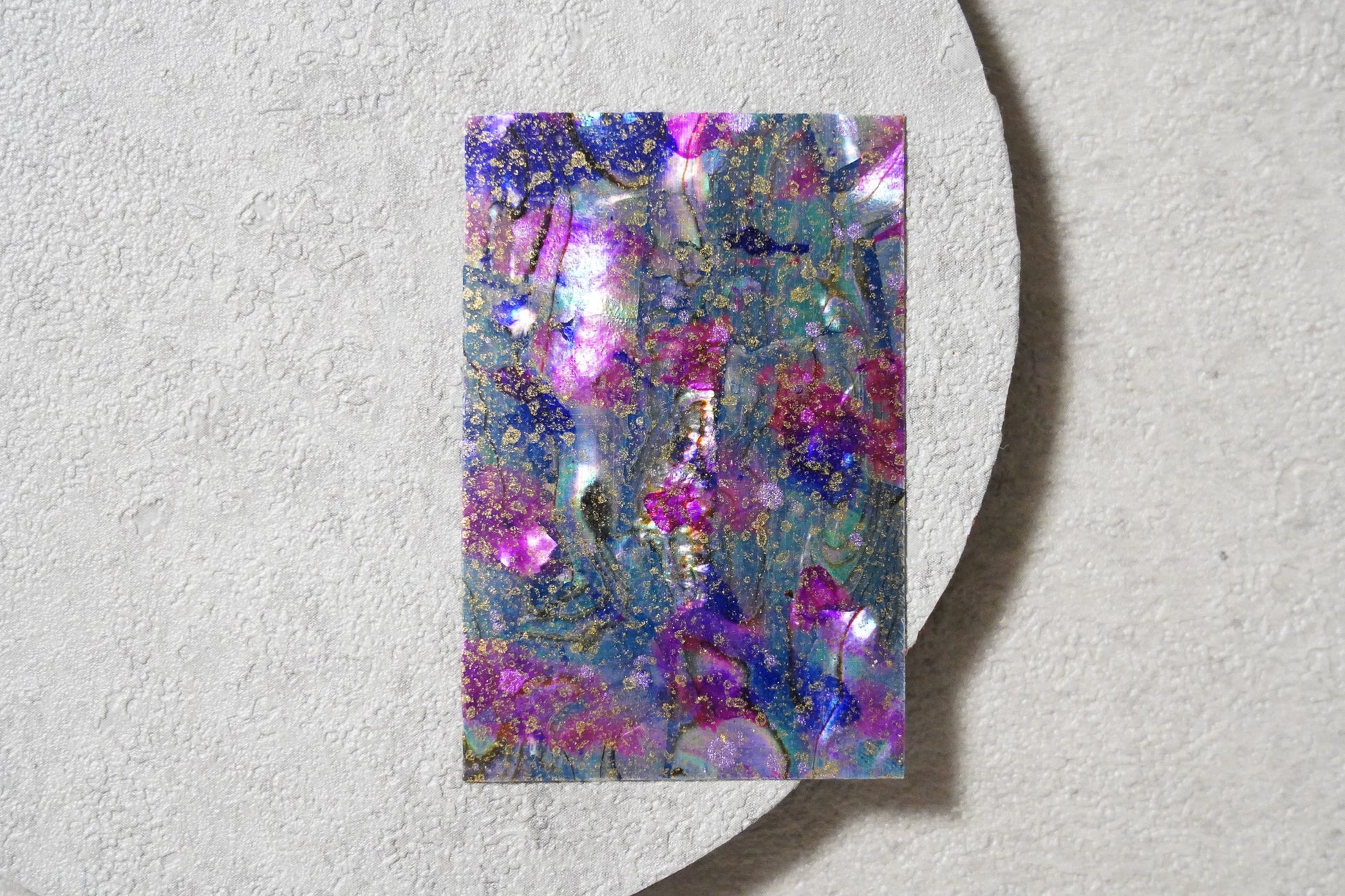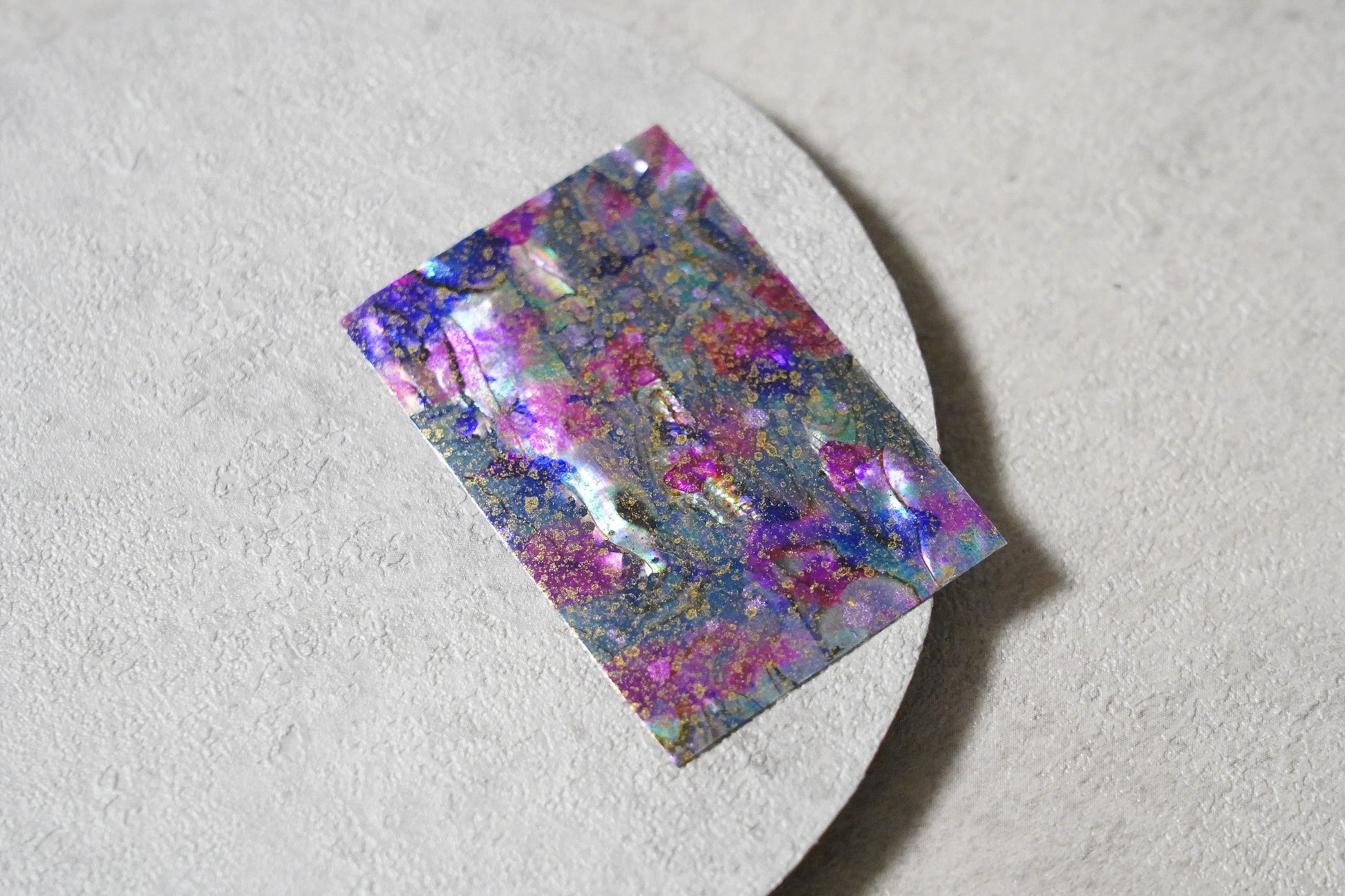 山森氏の生み出す螺鈿彩シールは全てが手作業、手描きで制作され、制作時の季節や気温や湿度によっても柄や色合いが変わります。
