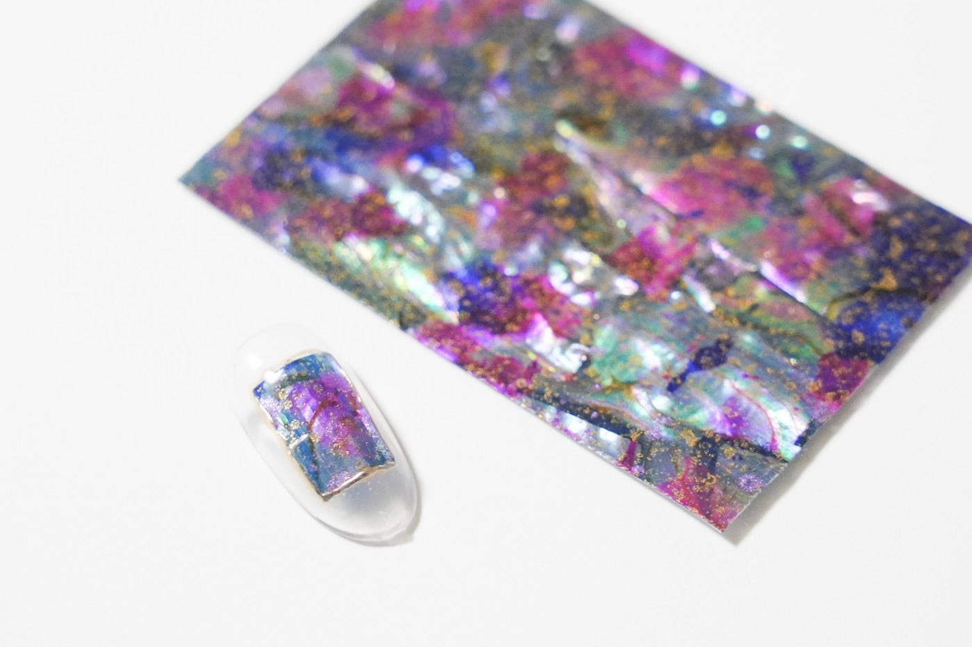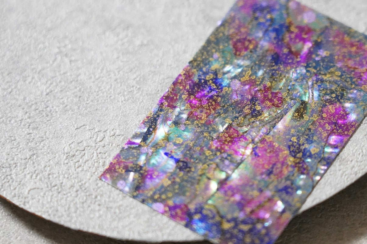 ネイルに施すための貝殻を柔らかくする加工や、小さな面積でも十分に色彩を表現できるよう試行錯誤を重ね、職人でありアーティストでもある山森氏だからこそ表現できる螺鈿彩の世界観をそのまま素材に落とし込みました。
