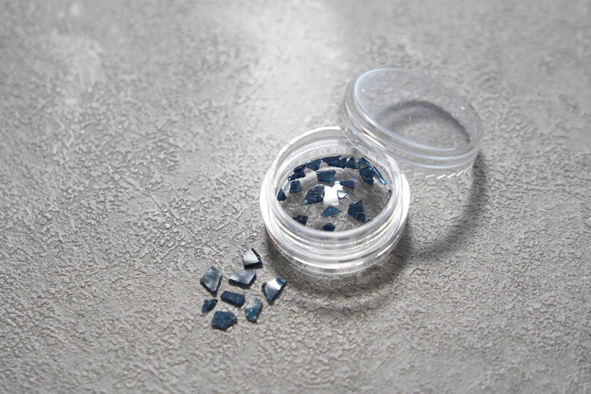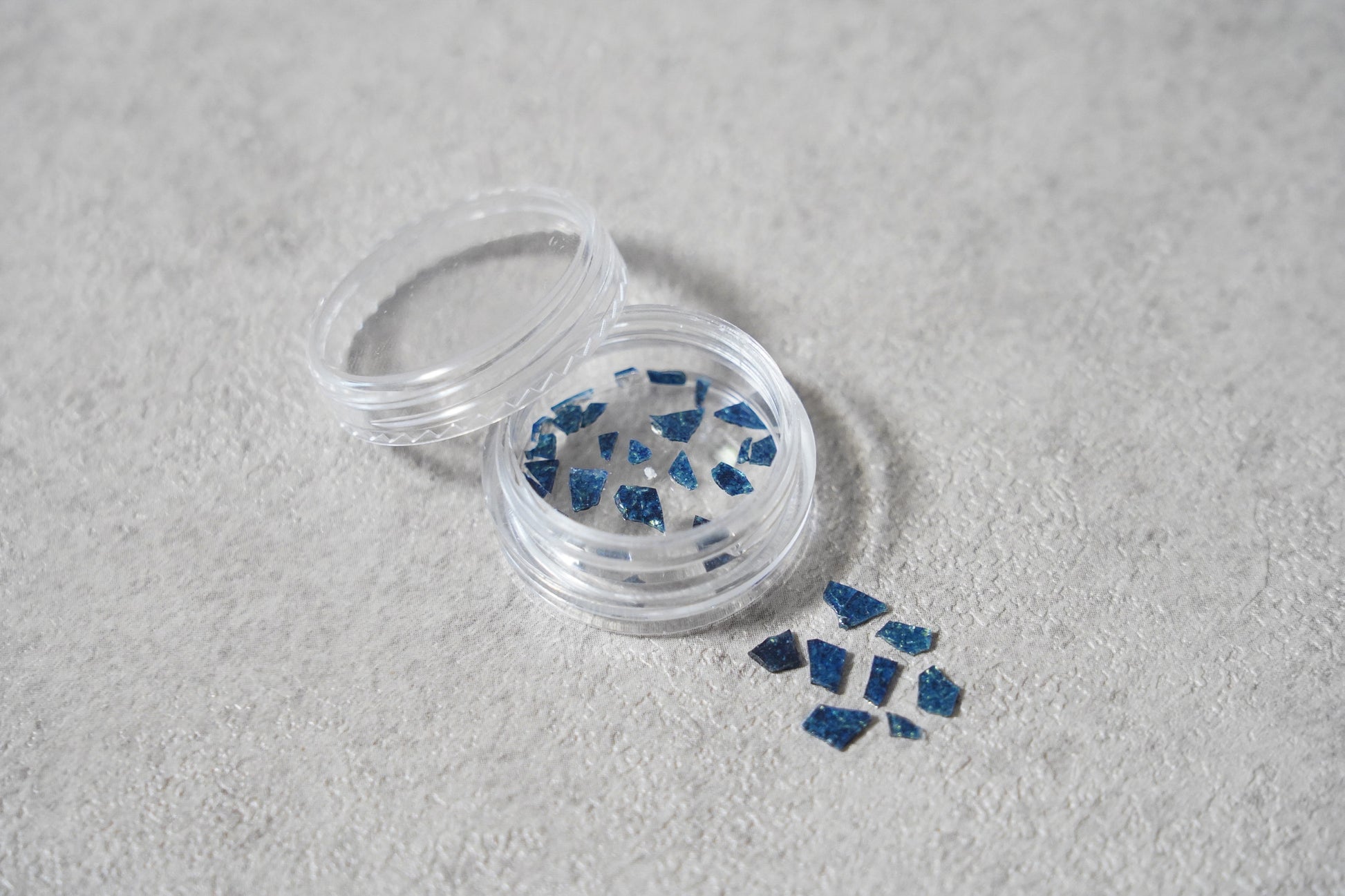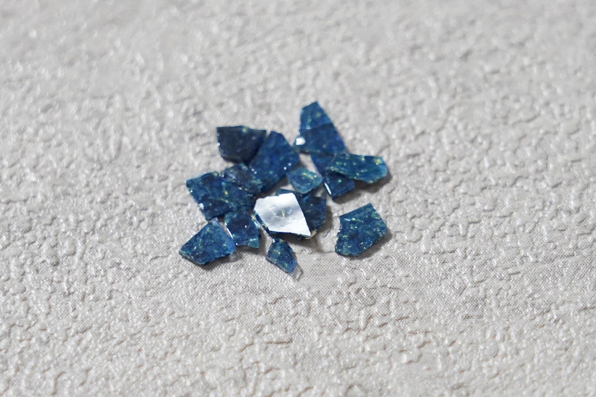 ※ガラス釉薬で作られておりますので、キッチンペーパーなどに七宝フレークを挟み、上からピンセットの柄の部分などの硬い物で圧を加えると簡単に割ることができます。お好みのサイズに調整してご使用ください。(割ったときに素材が飛び散らないよう、必ずキッチンペーパーなどで押さえた状態で割ってください)
