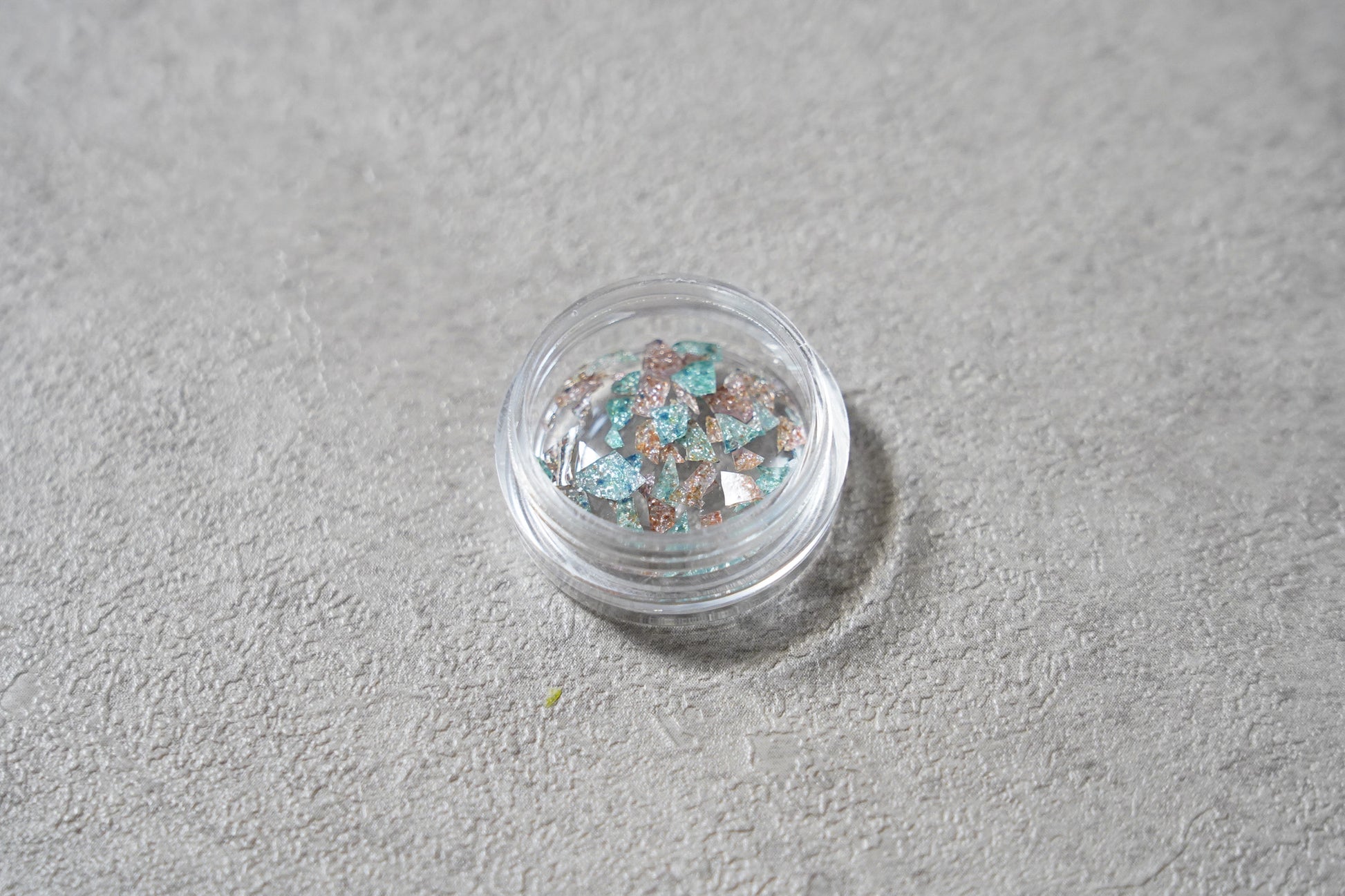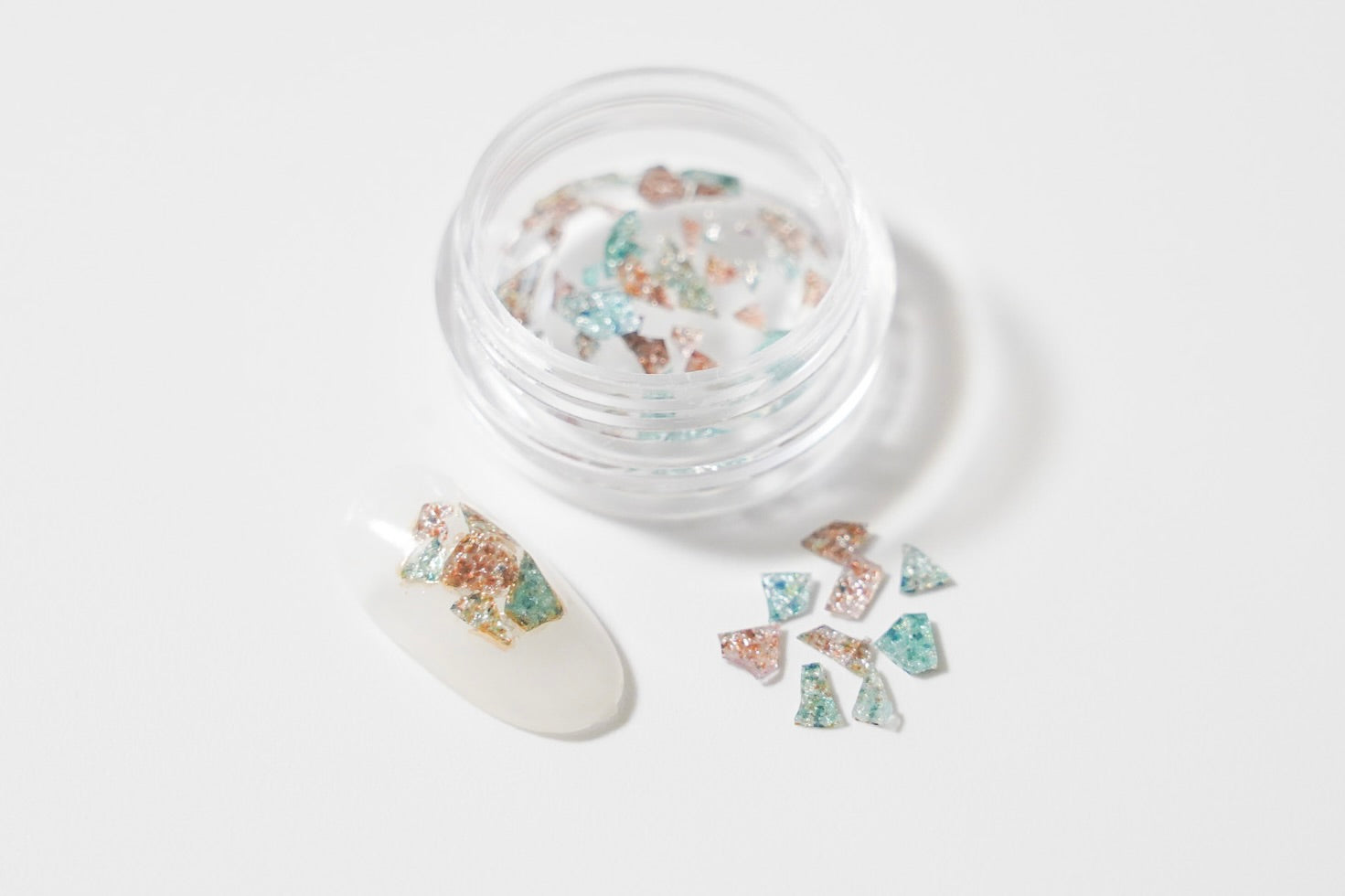 ネイルパーツのようにクリアジェルなどで固定して使用することのできる、本物の七宝焼きをフレークにしました。