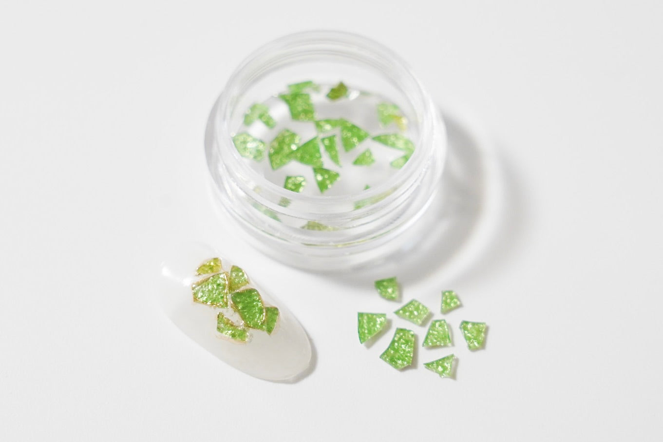 ネイルパーツのようにクリアジェルなどで固定して使用することのできる、本物の七宝焼きをフレークにしました。