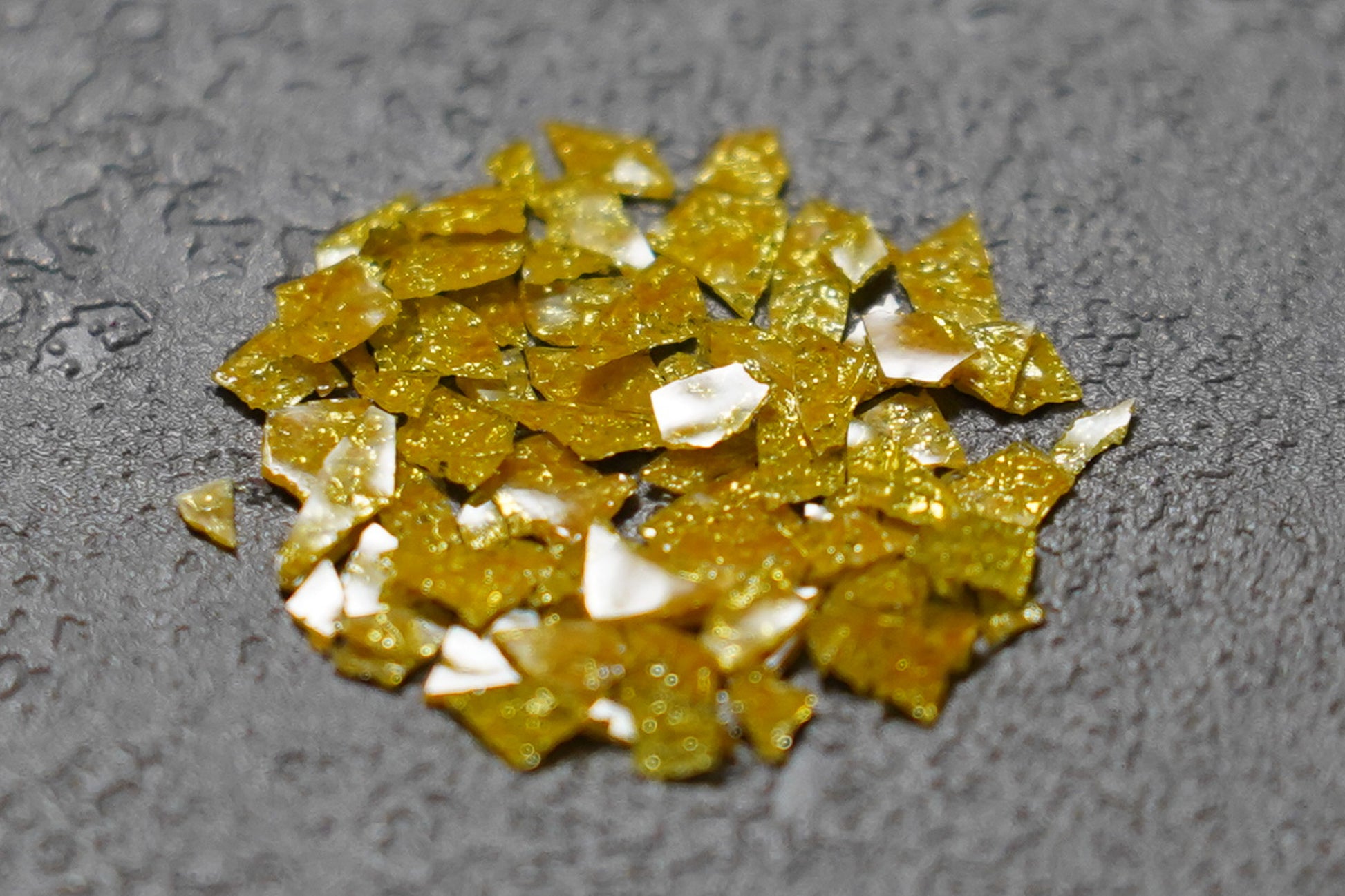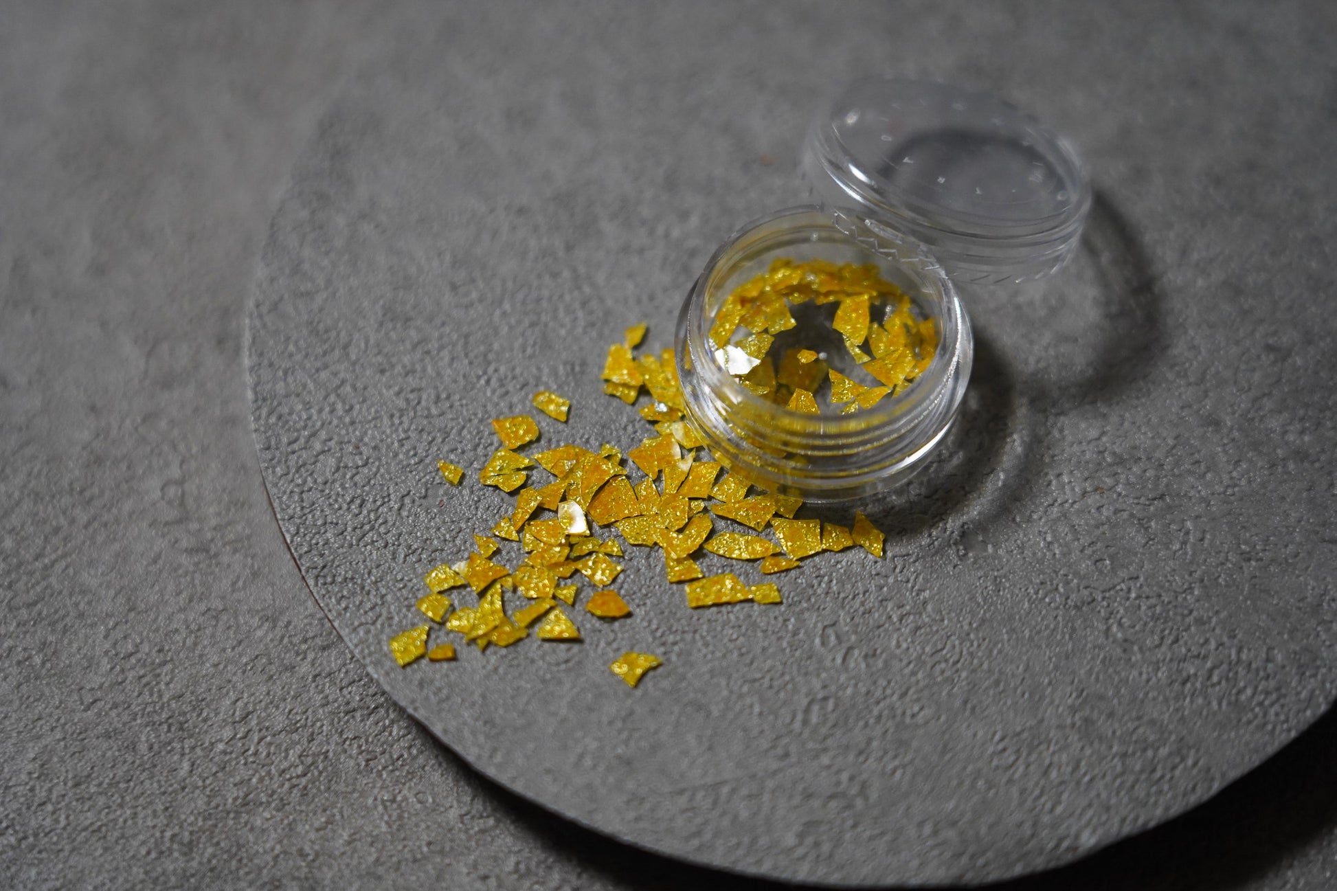 ※ガラス釉薬で作られておりますので、キッチンペーパーなどに七宝フレークを挟み、上からピンセットの柄の部分などの硬い物で圧を加えると簡単に割ることができます。お好みのサイズに調整してご使用ください。(割ったときに素材が飛び散らないよう、必ずキッチンペーパーなどで押さえた状態で割ってください)