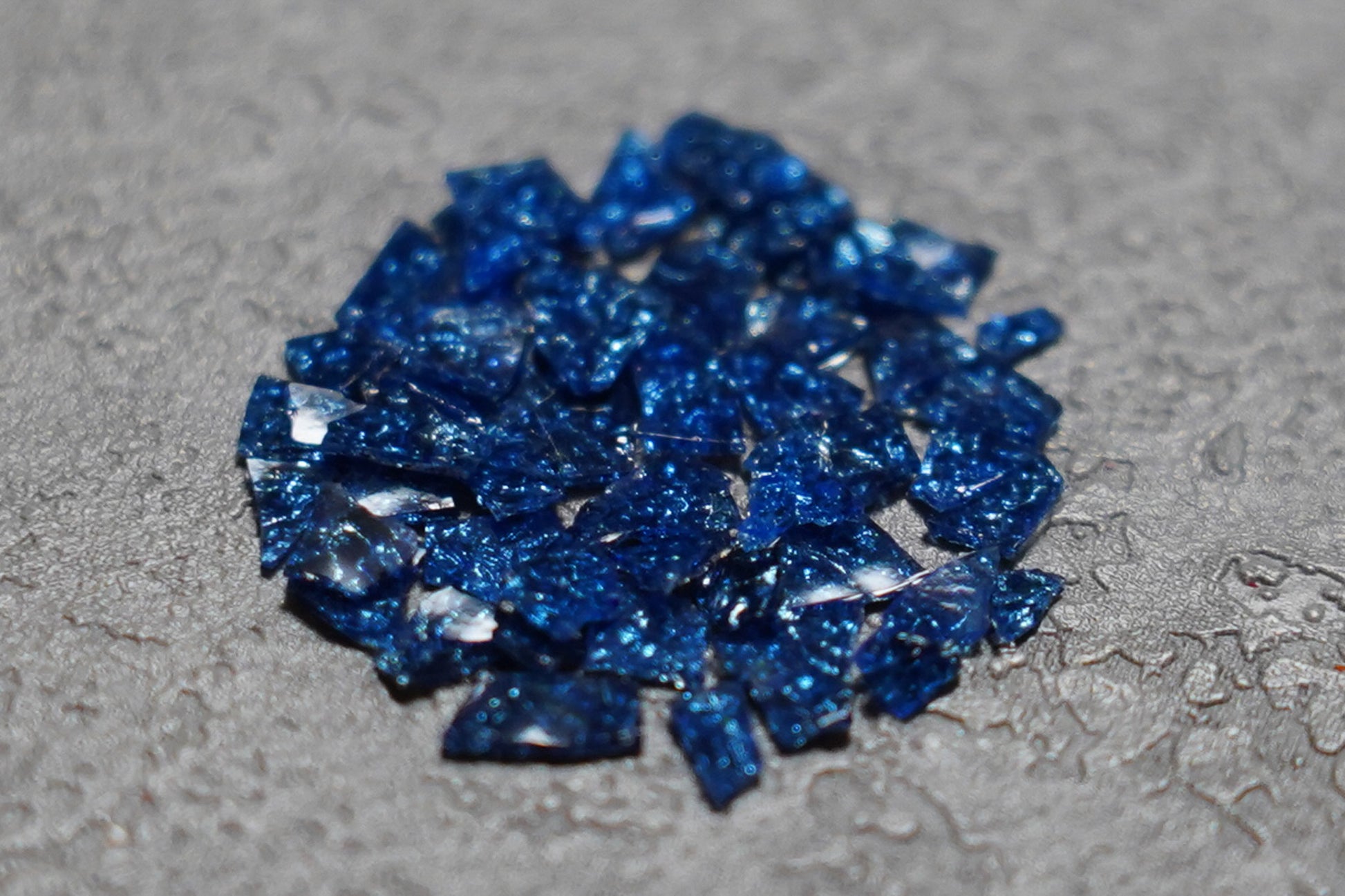 ※ガラス釉薬で作られておりますので、キッチンペーパーなどに七宝フレークを挟み、上からピンセットの柄の部分などの硬い物で圧を加えると簡単に割ることができます。お好みのサイズに調整してご使用ください。(割ったときに素材が飛び散らないよう、必ずキッチンペーパーなどで押さえた状態で割ってください)