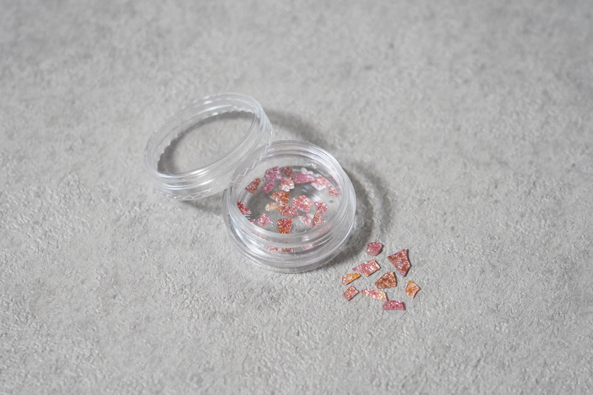 ネイルパーツのようにクリアジェルなどで固定して使用することのできる、本物の七宝焼きをフレークにしました。
