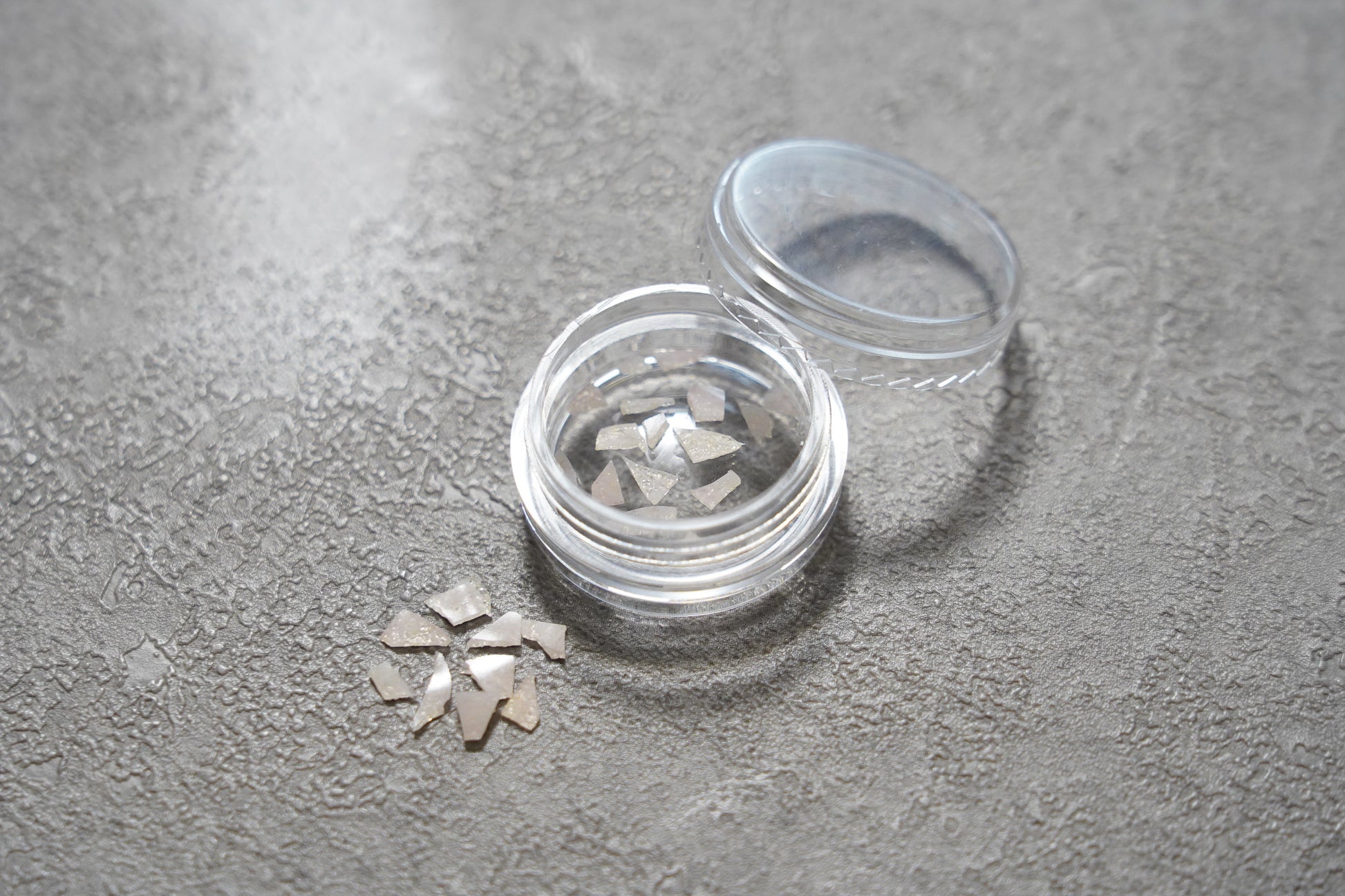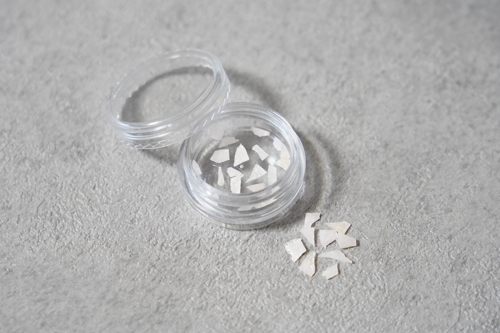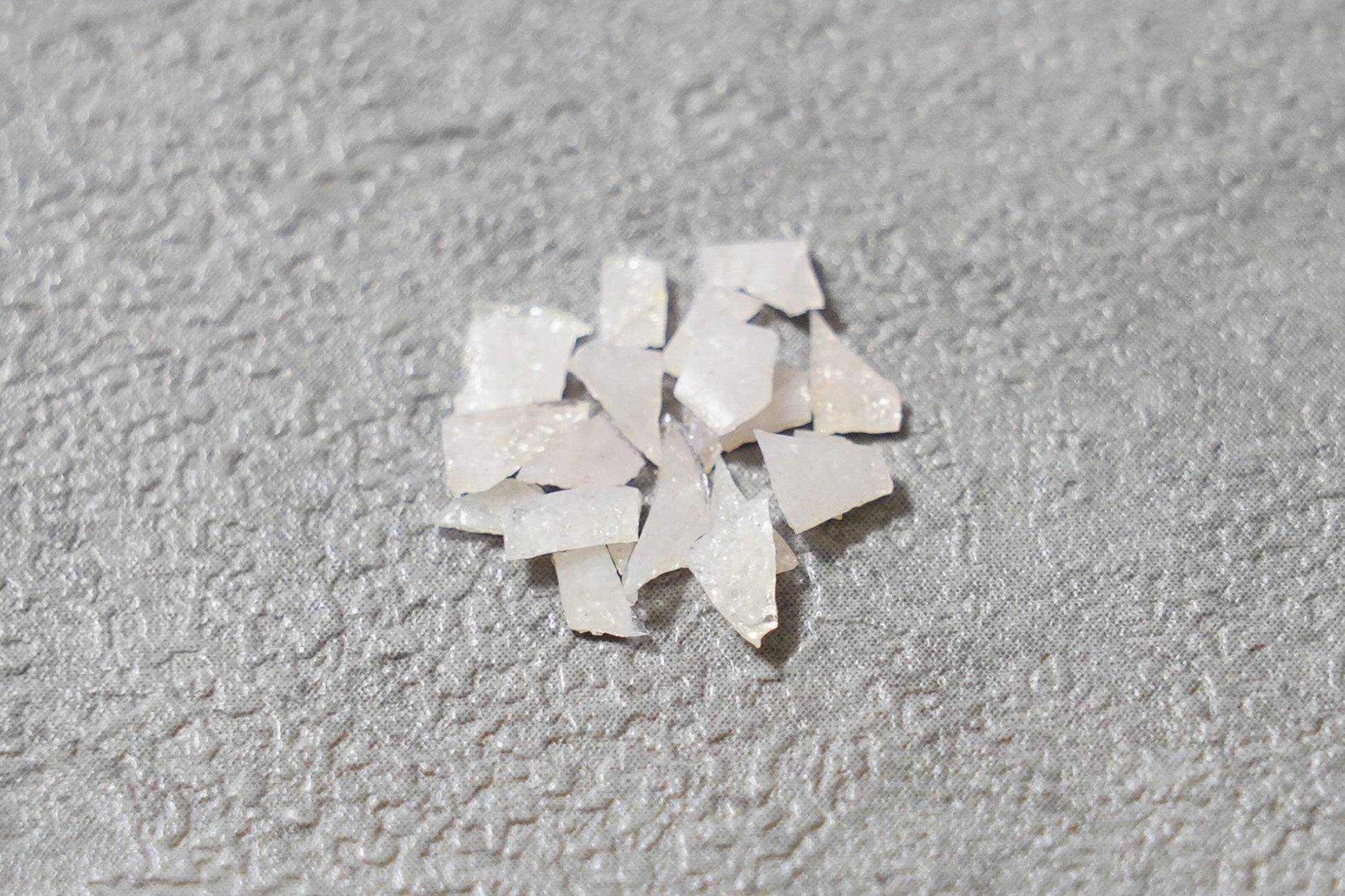※ガラス釉薬で作られておりますので、キッチンペーパーなどに七宝フレークを挟み、上からピンセットの柄の部分などの硬い物で圧を加えると簡単に割ることができます。お好みのサイズに調整してご使用ください。(割ったときに素材が飛び散らないよう、必ずキッチンペーパーなどで押さえた状態で割ってください)