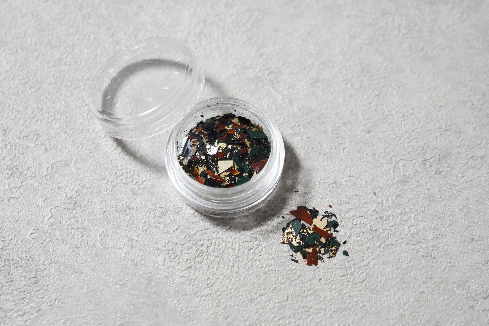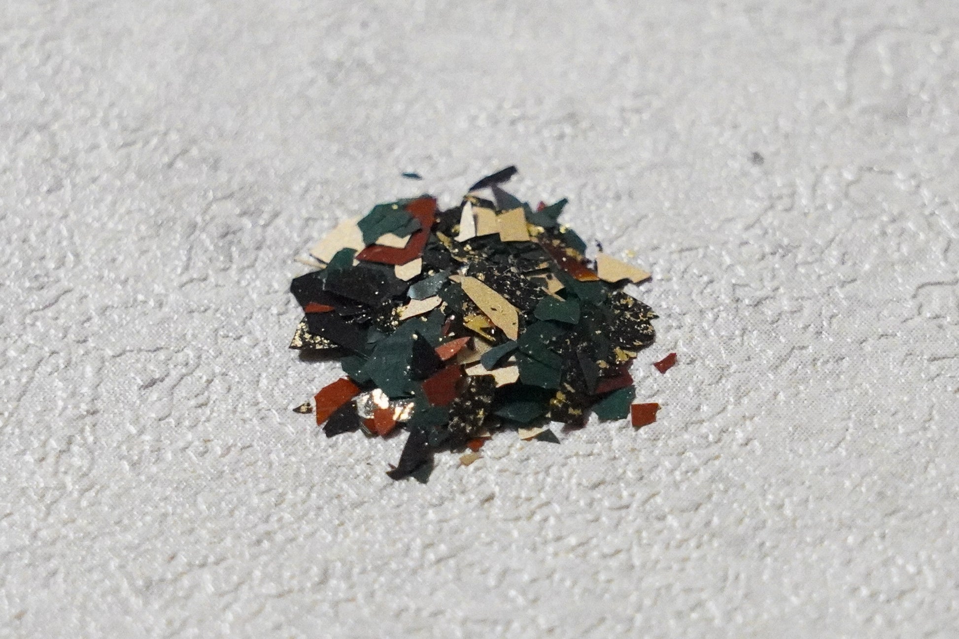 3色の本物の漆や金箔をフレーク状にしてお届け。