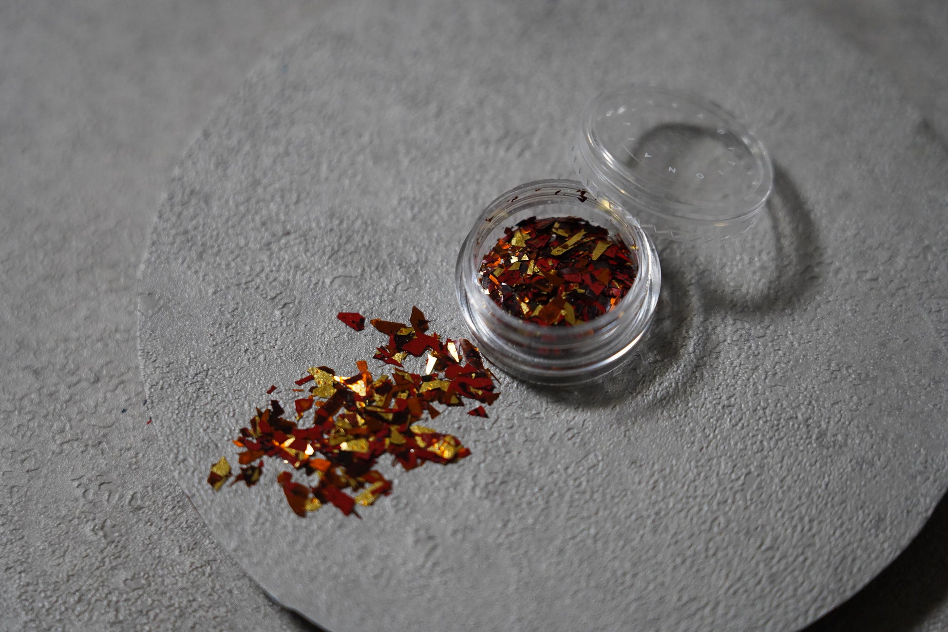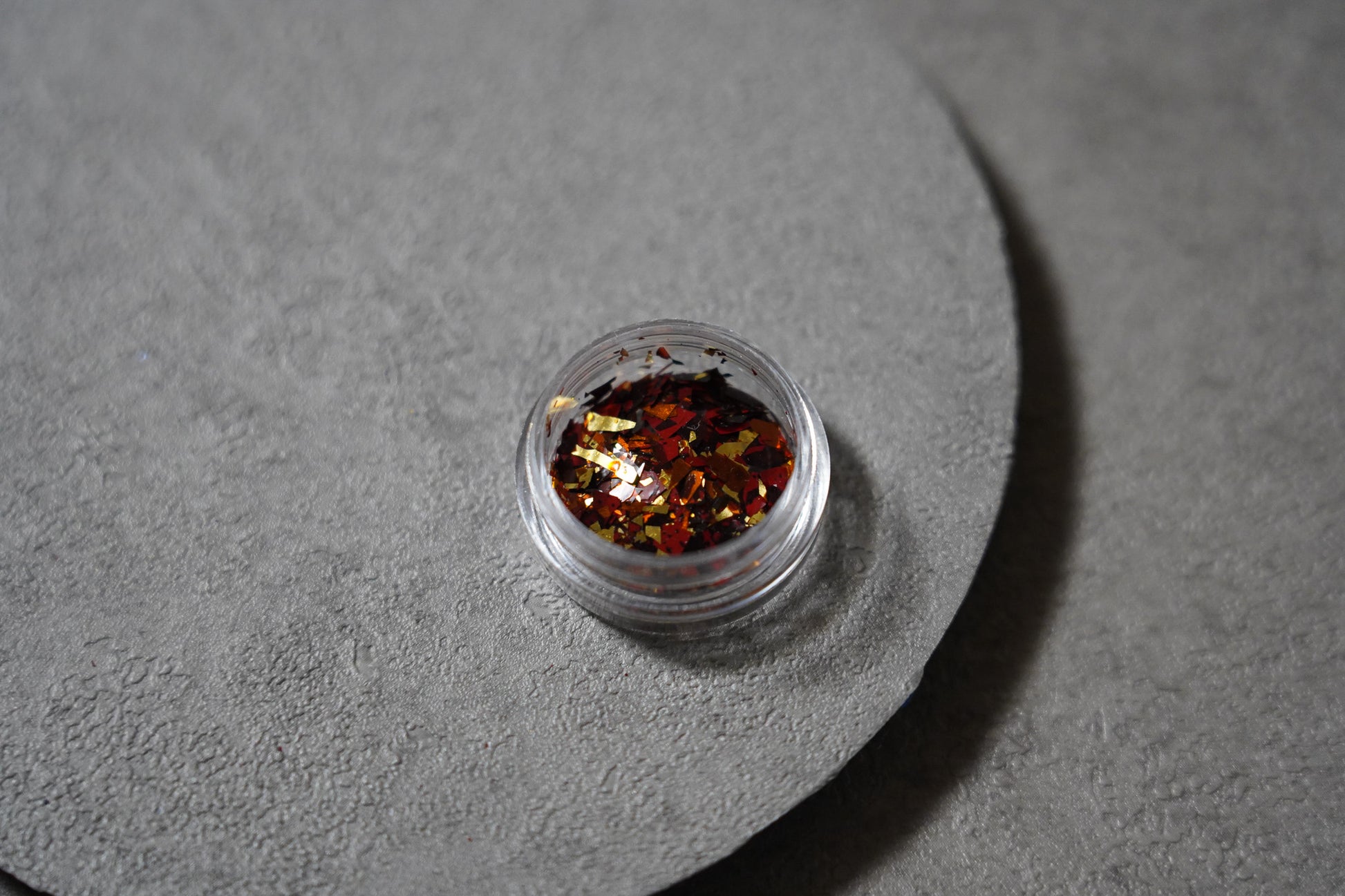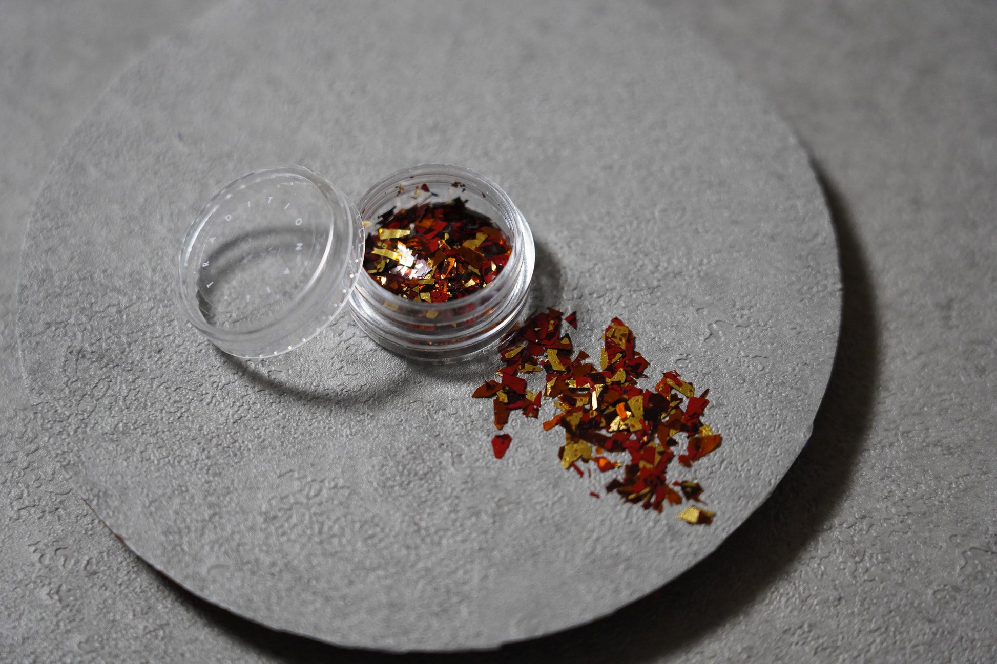 3色の本物の漆や金箔をフレーク状にしてお届け。